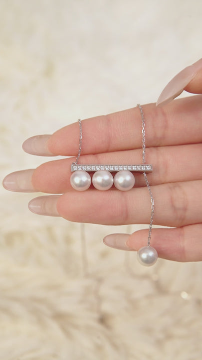 FIBONOVA Cadena de Perlas de Agua Dulce Ligeras Serie Notas Musicales-bachata (perla 7-8mm)Perla Auténtica Cultivada en Agua Dulce para Joyería Femenina